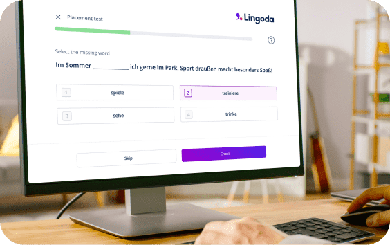 Bei Lingoda gibt es ein breites Spektrum an Online-Sprachkursen für alle, die Lust haben, eine neue Sprache zu lernen. Unsere Kurse sind für eine Reihe an Sprachniveaus geeignet, von Anfänger bis Fortgeschritten, und decken die Sprachen Deutsch, Englisch, Spanisch, Französisch und Italienisch ab. Wenn du dich für Lingoda entscheidest, lernst du deine neue Sprache anhand eines auf dich zugeschnittenen Lehrplans, der dir praktisches Wissen für Konversationen, die Grundzüge der Grammatik und einen erweiterten Wortschatz vermittelt. Wir haben außerdem unterschiedliche Kurse für verschiedene Ziele, wie schnelle und intensive Fortschritte (Lingoda Sprint), flexibles Lernen, wann immer du möchtest (Lingoda Flex) oder gemeinschaftliches Lernen für gegenseitige Motivation (Lingoda Teams). So ist für jeden Lerntyp und jedes Ziel etwas Passendes dabei.