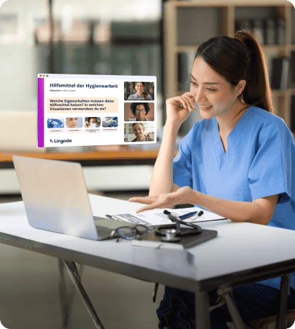 Als Europas führende Online-Sprachschule und erfahrener Online-Dienstleister beweist Lingoda auch im medizinischen Sektor und in der Pflege Kompetenz. Seit 2020 ist Lingoda als Bildungsträger für internationale Gesundheitsfachkräfte zertifiziert. Profitieren Sie von unserem bundesweiten Netzwerk und unseren flexiblen Kursangeboten für Pflegekräfte, Ärztinnen und Ärzte, Hebammen und OTA – vollständig staatlich förderbar!