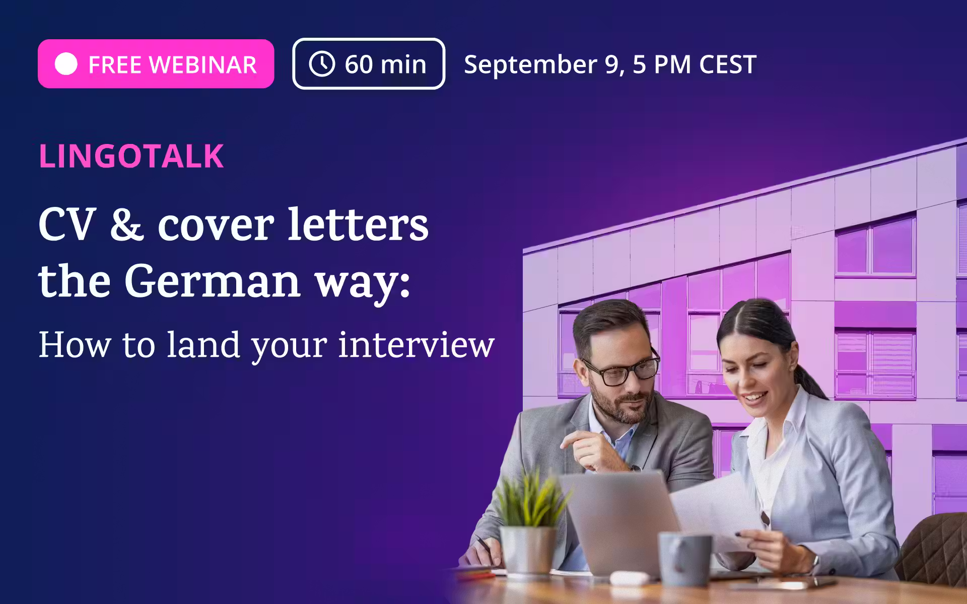 Job hunting in Germany and not hearing back? Crafting a CV and cover letter that land you an interview can be tough, especially with cultural expectations and language barriers. You’re not alone — and this free 60-minute live webinar is here to help. With Viktoria, a recruiter at Lingoda, as our expert guest, you’ll learn what German recruiters really look for, how to avoid the most common CV and cover letter mistakes, and how to write with confidence in professional German. You’ll also get insider tips on tailoring your application and preparing for the first recruiter call — plus the chance to get your questions answered live. Ready to go from overlooked to interview-ready? Sign up now and take your next step toward a job in Germany.