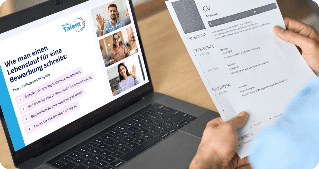 Match Talent is an initiative by the online language school Lingoda in collaboration with the NGO Kiron Open Higher Education, which supports international talents free of charge. The goal of the initiative is a sustainable qualification and integration of international talents in Germany. International talents are supported in their search for professional training that matches their skills, interests and career goals.