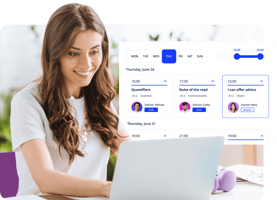 Review lessons, practise what you’ve learned, or prepare for your next session — anytime, on your computer or in our mobile app. Wherever you are, your progress is just a click away.