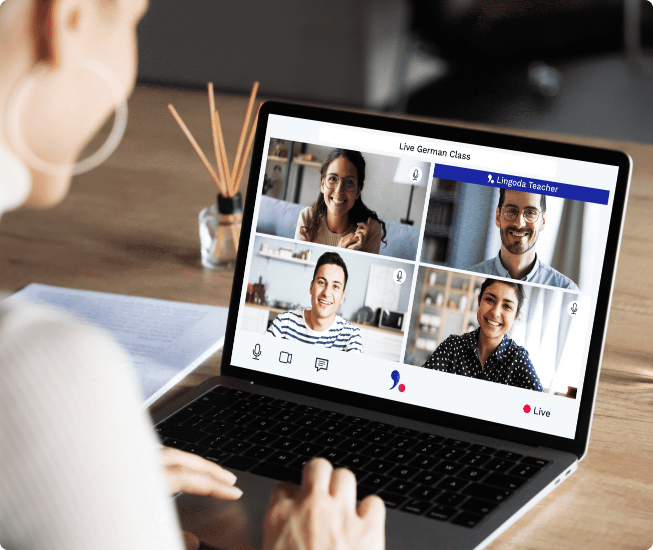 Chez Lingoda, vous suivez des cours en ligne qui sont animés en direct par des professeurs d’allemand. C’est l’un des grands atouts de notre méthode d’apprentissage. Nous sommes une école de langue, et non pas une application en ligne. Imaginez vos futurs cours comme des classes virtuelles. Pendant une heure, vous avez tout le loisir de participer, de parler, de vous entraîner au maximum. Si vous avez opté pour un cours particulier, vous êtes en tête à tête avec un enseignant pendant une heure. Si vous avez choisi un cours collectif, la leçon s’organise en petit groupe de cinq apprenants maximum. En soixante minutes, chacun a le temps de bien comprendre la leçon et de s’exercer l’oral. Dans les deux cas, vous profitez d’un cadre d’apprentissage privilégié pour apprendre l’allemand dans les meilleures conditions.