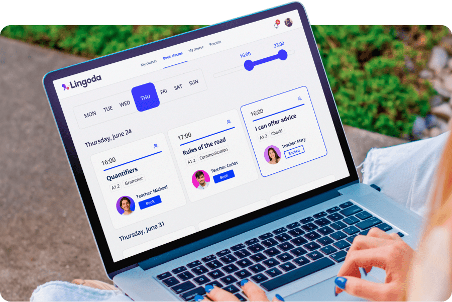 Нет, мы не приложение для изучения языков. Мы языковая онлайн-школа. Как и любая школа, мы предоставляем языковые уроки с сертифицированными преподавателями-носителями языка. В Lingoda мы верим, что ничто не может заменить живое взаимодействие и рекомендации от преподавателя.